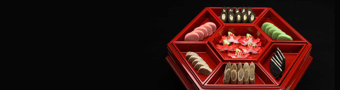 形状は四角(五品)、六角(七品)、八角(九品)、円形などがあり、中に盛り込んだ小皿には色や形が美しく、冷めても味の変わらない上質な酒の肴を客の数に合わせた数で盛り込みます。